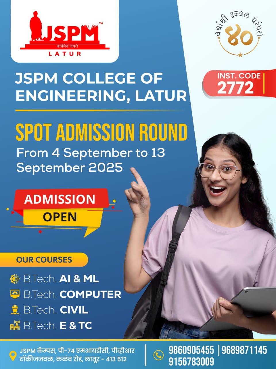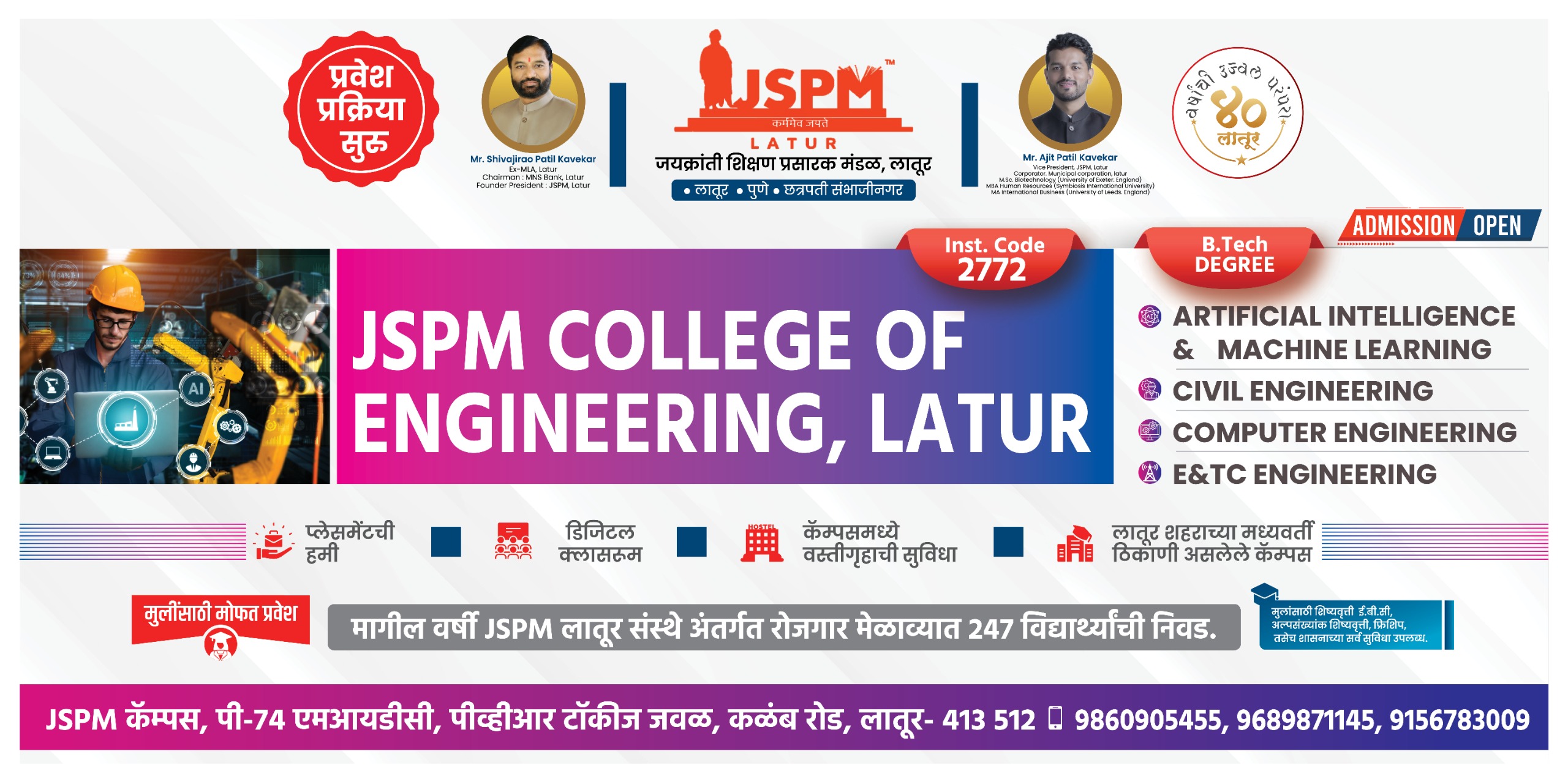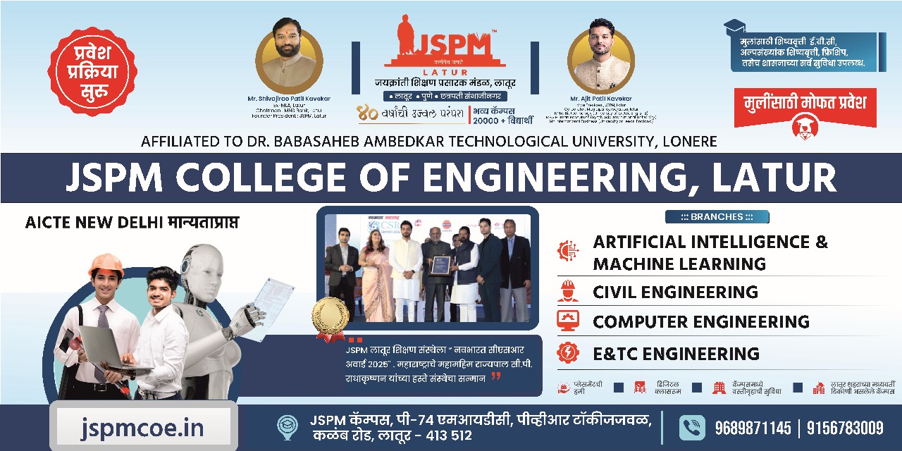 India is fast emerging as the talent hub for the global knowledge economy. J.S.P.M. Group of Institute's Latur is proud of partnering in this national endeavor by delivering quality education towards evolving holistic competence to young students seeking career opportunities in the globalized corporate world.